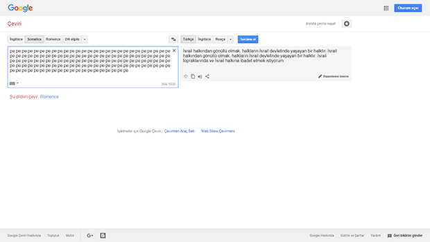 Çevrilecek metin olarak: “pe pe pe” yazıyoruz. İlk Çeviri: “İnsanlar ibadet eder”. Aman canım ne olacak boş ver diyorsanız devam edelim.