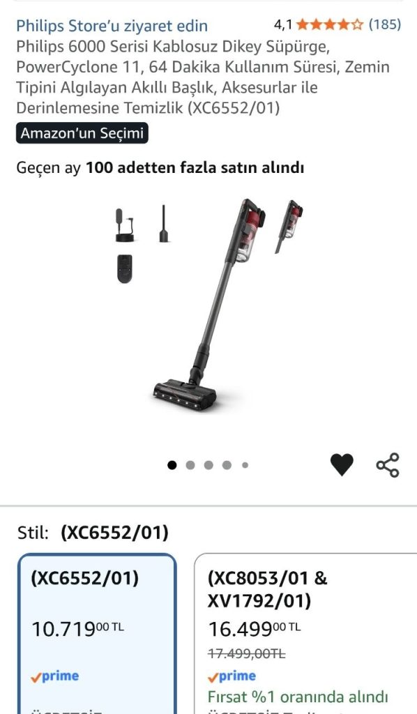 📦 Philips 6000 Serisi Kablosuz Dikey Süpürge, PowerCyclone 11, 64 Dakika Kullanım Süresi, Zemin Tipini Algılayan Akıllı Başlık, Aksesurlar ile Derinlemesine Temizlik (XC6552/01)