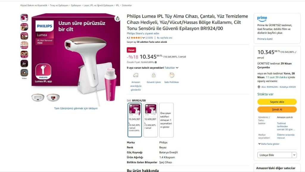📦 Philips Lumea IPL Tüy Alma Cihazı, Çantalı, Yüz Temizleme Cihazı Hediyeli, Yüz/Vücut/Hassas Bölge Kullanımı, Cilt Tonu Sensörü ile Güvenli Epilasyon BRI924/00