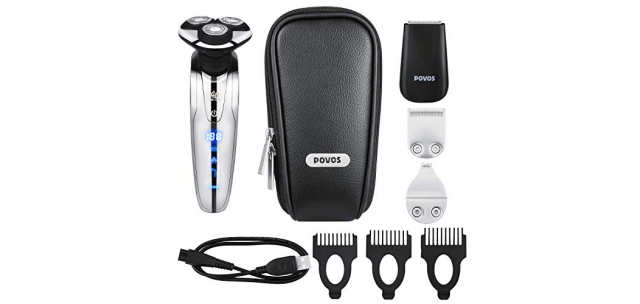 POVOS 4-In-1 Erkek Bakım Seti, USB Şarjlı Elektrikli Tıraş Makinesi, Döner Tıraş Makinesi, Saç Kesme Makinesi, Sakal Düzeltici, Detay Kılıflı Seyahat Çantası