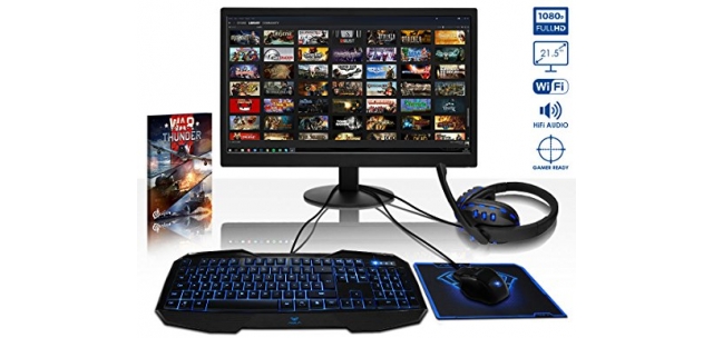 Savaş Thunder oyunu paketle Vibox Black Ice LA6-153 oyun PC bilgisayar, 22 inç HD Monitör (3.8GHz AMD A6 çift çekirdekli işlemci, Radeon R5 grafik yongası, OS olmadan 4Go DDR4 RAM, 1TB HDD)